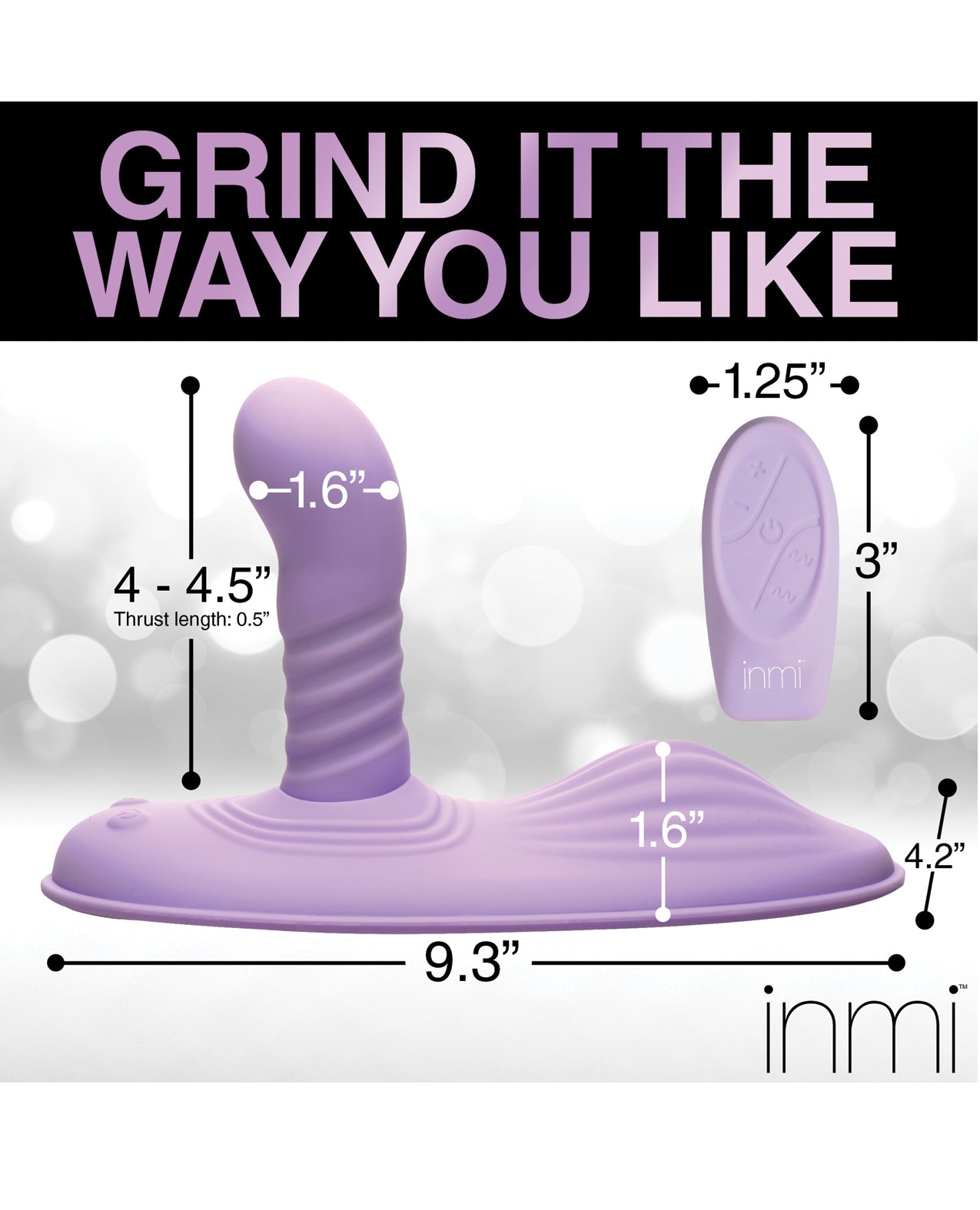Transform any chair or couch into the perfect, sexy, saddle machine with the Inmi Thrust 'N' Grind Grinding Pad! Featuring powerful vibration and an auto-thrusting dildo, this pad is made from silky smooth, premium-quality silicone that is phthalate-free and body-safe. The ribbed mound provides extra backdoor stimulation, while the round-headed dildo with ribs along the shaft delivers an intense thrusting experience. Control 4 speeds and 7 vibration patterns with the included remote, and enjoy hands-free play anytime!