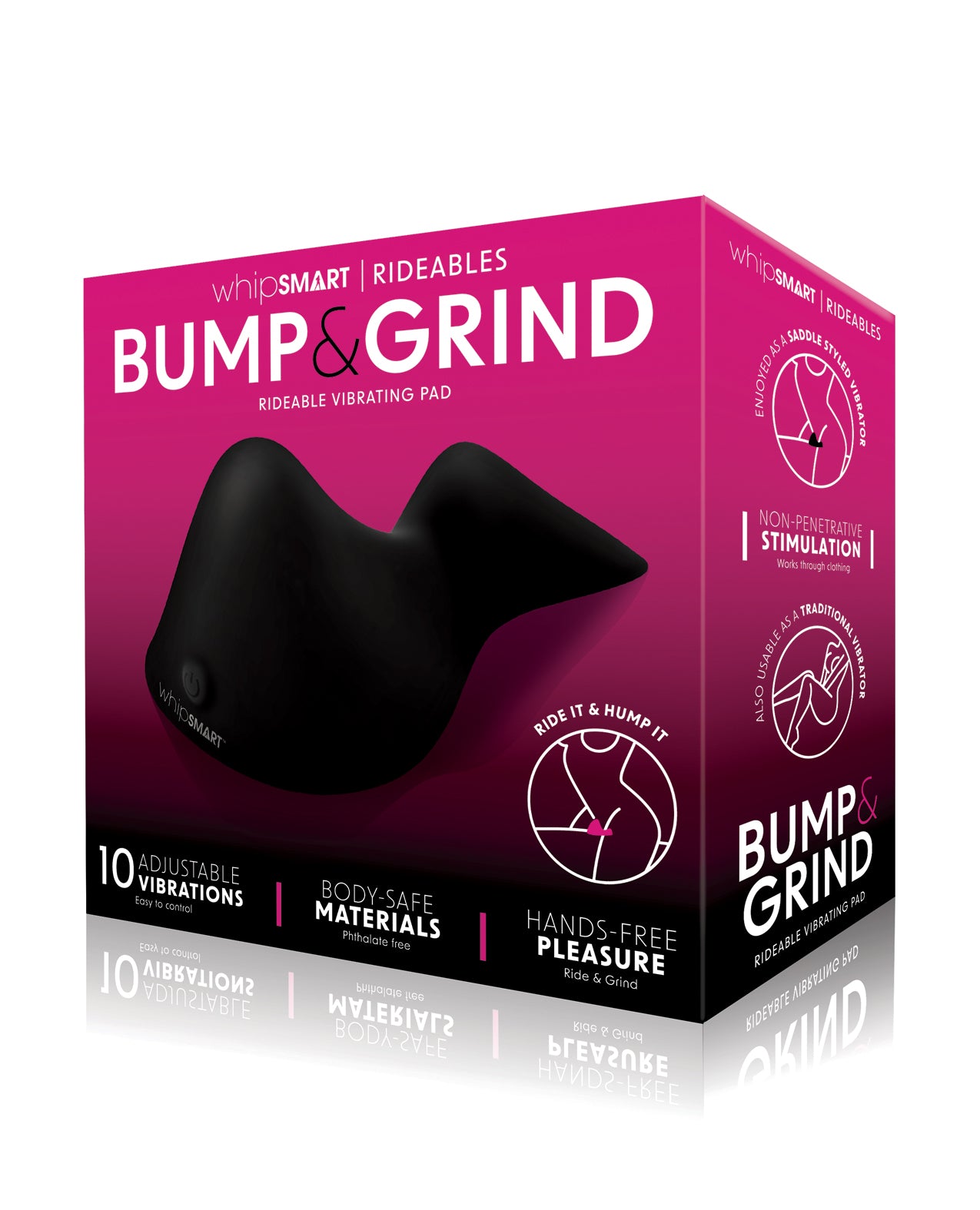 Enjoy non-penetrative clitoral, vaginal, and perineal stimulation with the Whipsmart Bump & Grind Rideable Vibrating Pad. Designed for anyone who loves grinding and humping sensations, this saddle-style vibrator delivers powerful, hands-free pleasure exactly where you want it.