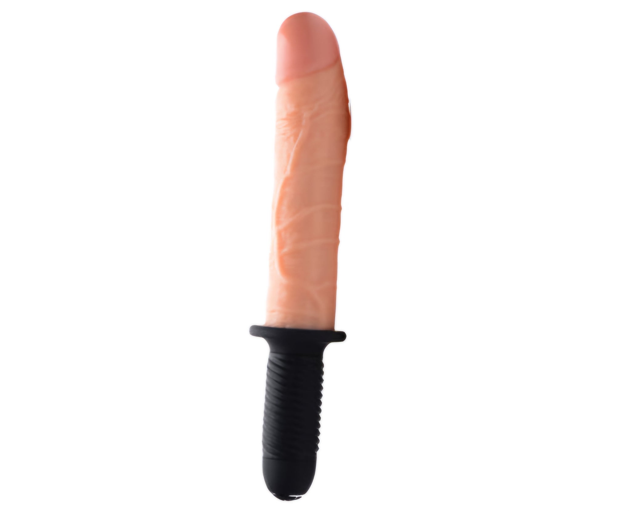 Grab it by the hilt and go deep! This realistic shaft looks just like the real thing, but with even more bulging veins to massage you on the inside with every thrust/. With a mighty 9 inches of textured length, 4 intense vibration speeds, and 9 unique patterns of pulsation, you have plenty to work with! Take a grip on the grooved, easy-to-hold handle and aim for your favorite hole. Use on your own or with a partner for an intense penetrative experience! Compatible with both silicone and water-based lubricants.